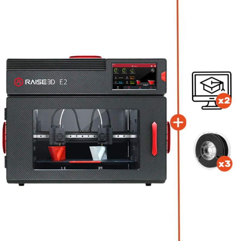 Raise3D bietet mit diesem Drucker eine Maschine, die perfekt für Bildungseinrichtungen oder Unternehmen ist, die schnell und qualitativ hochwertig produzieren wollen. Der E2 integriert zudem zwei Softwarelösungen für ein vollständiges Produktionsmanagement.