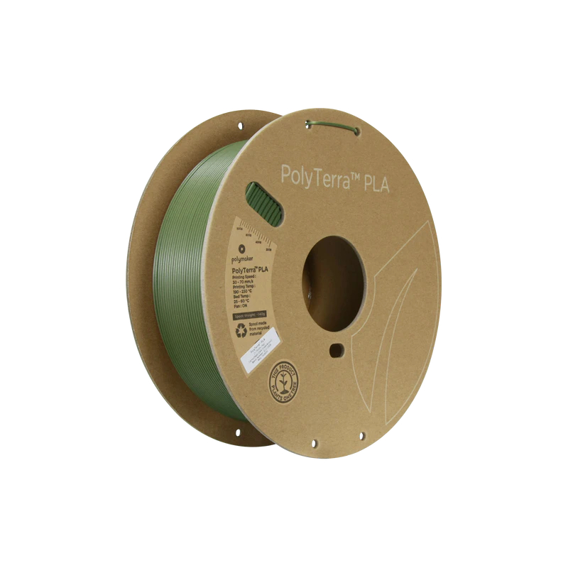 Das umweltfreundliche PLA-Filament PolyTerra Dual Dunkelgrün und Braun wurde von Polymaker mit der Technologie "Fully Bio Compound (FBC)" entwickelt, einer Mischung aus PLA (biologisch abbaubarem Polymer auf Basis von Mais-, Rüben- und Weizenstärke) und organischen Mineralien.