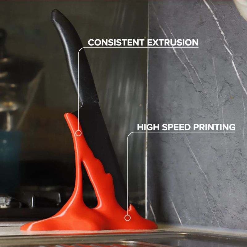 Hohe Druckgeschwindigkeit ohne Qualitätsverlust: Durch die überarbeitete Formel sind Druckgeschwindigkeiten bis zu 300 mm/s möglich, mit High-Flow-Hotend sogar 500 mm/s. Die Extrusion bleibt stabil, ohne Fäden oder Unterextrusionen – ideal für schnelle, präzise Ergebnisse.
