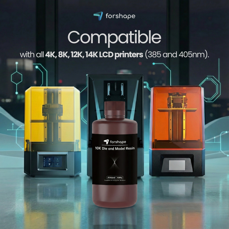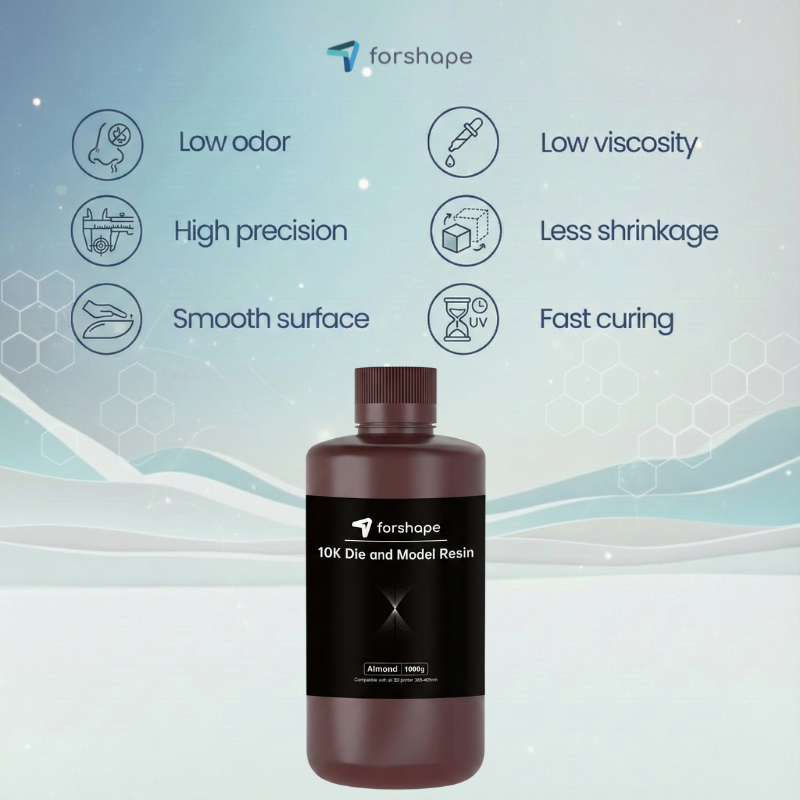 Das 10K Die and Model Almond Forshape Premium Resin ist ein hochwertiges Photopolymer, speziell entwickelt für die Herstellung hochkontrastiger Dentalmodelle. Der Mandelton verbessert die Sichtbarkeit feiner Details, während die hohe Präzision strenge Toleranzen für herausnehmbare Teile und anspruchsvolle dentale Anwendungen gewährleistet.