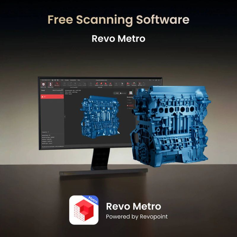 Der Revopoint MetroY Ultra CMM Edition basiert auf einer vollständigen Softwareumgebung mit Revo Metro und Revo Design. Erstere verwaltet den gesamten Workflow vom Scan bis zum Mesh mit Funktionen für automatisierte Verarbeitung und erweiterte Bereinigung. Letztere erleichtert den Übergang zu CAD durch parametrische und organische Modellierung.