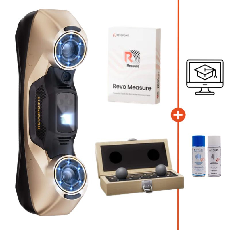 Diese CMM-Edition integriert zusätzlich einen erweiterten metrologischen Workflow mit der CMM-zertifizierten Ball Plate und der Software Revo Measure, wodurch Scans direkt in prüfbare 3D-Messdaten für die Qualitätskontrolle umgewandelt werden.