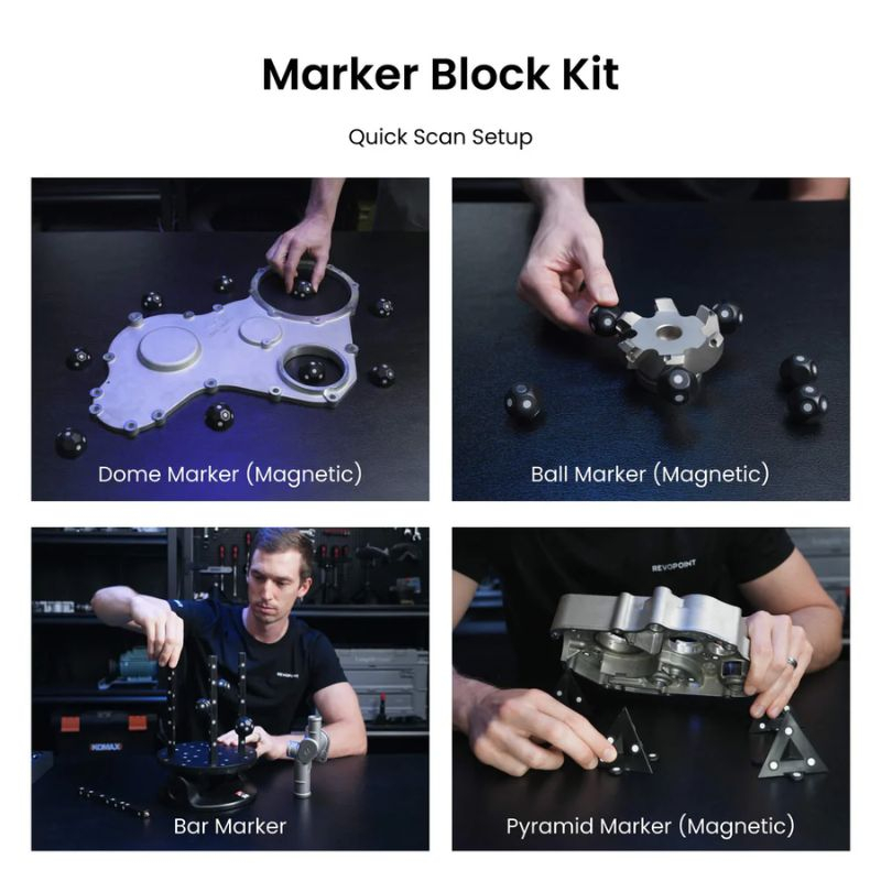 Das Marker-Block-Kit der Advanced-Version verbessert die Tracking-Stabilität und Scan-Kontinuität erheblich, insbesondere bei großflächigen oder strukturschwachen Objekten. Mit magnetischen Kugel-, Dome- und Pyramiden-Markern sowie Stabmarkern und 6-mm-Markern lässt sich die Scan-Umgebung besser strukturieren und eine präzise Punktwolken-Ausrichtung sicherstellen.