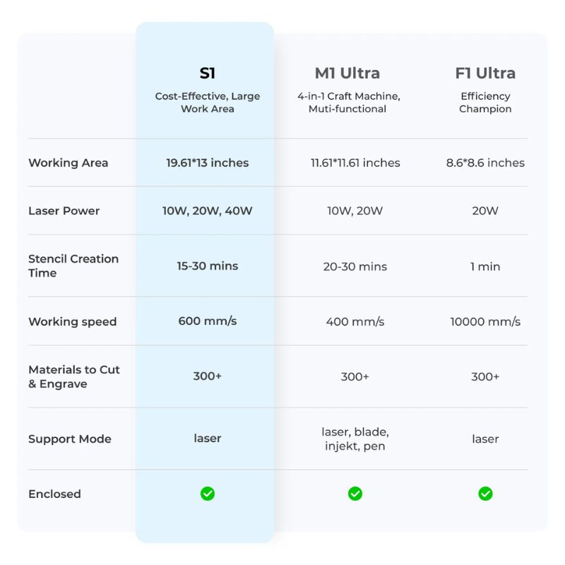 Spezifikationen für xTool Siebdruckmaschine Serie S, D, P, F