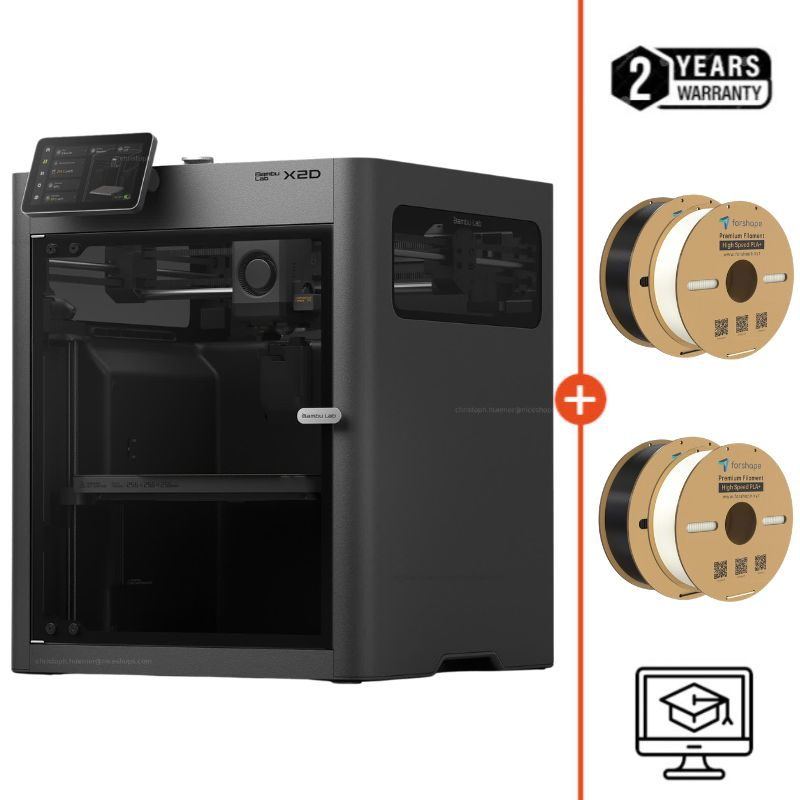 Der Bambu Lab X2D ist ein 3D-Drucker mit Doppeldüse, der für leistungsstarken Multimaterialdruck und technische Anwendungen entwickelt wurde. Dank seiner aktiv beheizten Kammer, des Servo-Extruders und der KI-Erkennung bietet er eine konstante Qualität und hohe Zuverlässigkeit.
