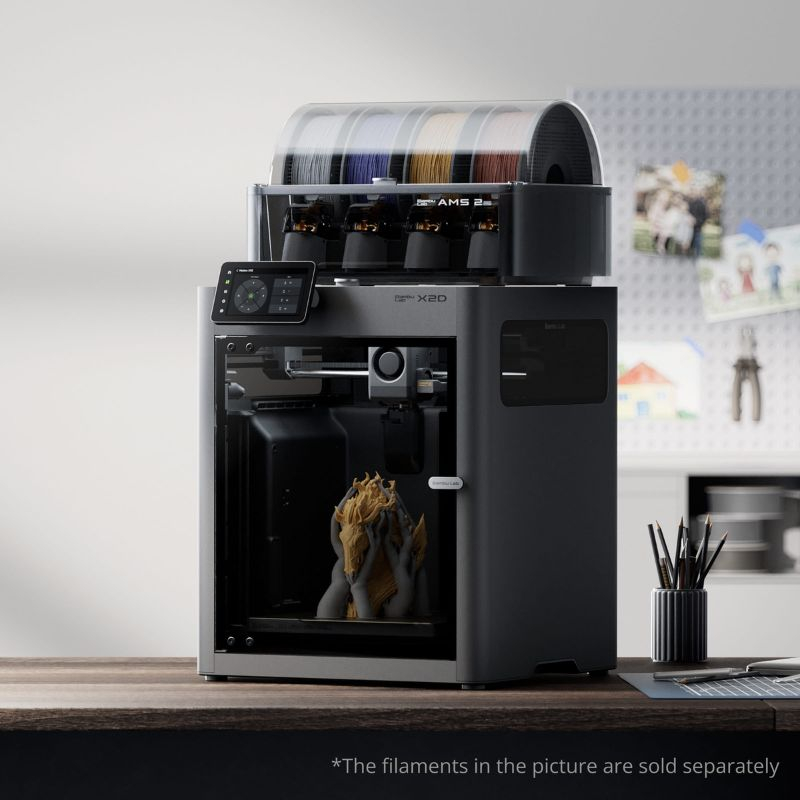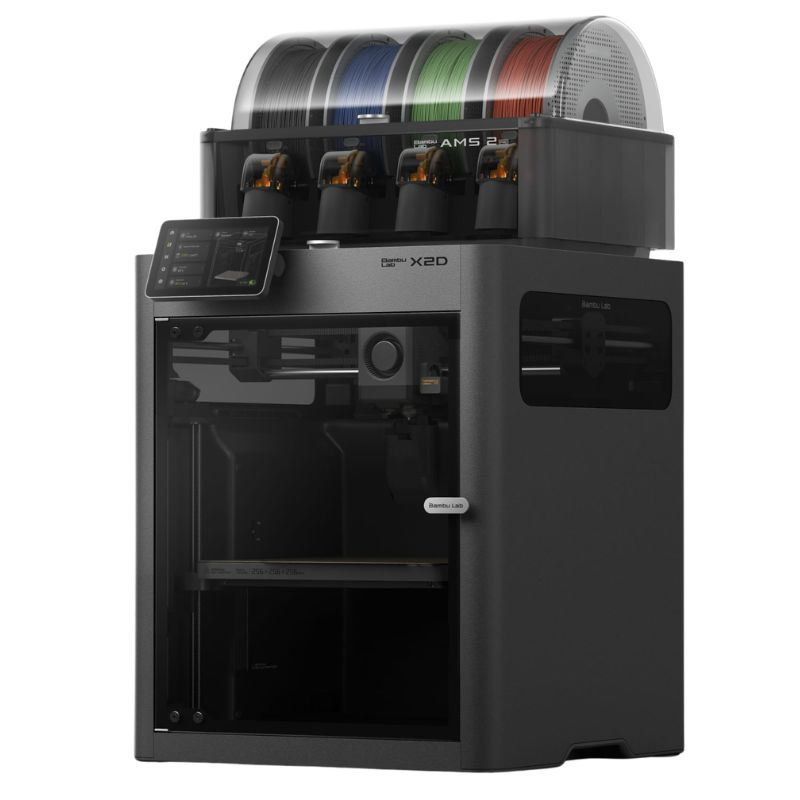 Die Bambu Lab X2D Combo stellt eine Weiterentwicklung der Bambu Lab X2D dar und integriert nativ das AMS 2 Pro System für die automatisierte Filamentverwaltung. Ihr Doppeldüsen-System erleichtert den Multi-Material-Druck und verbessert gleichzeitig Qualität und Produktivität der gedruckten Teile.