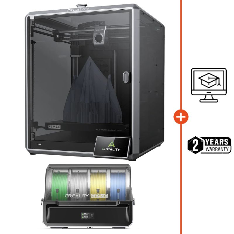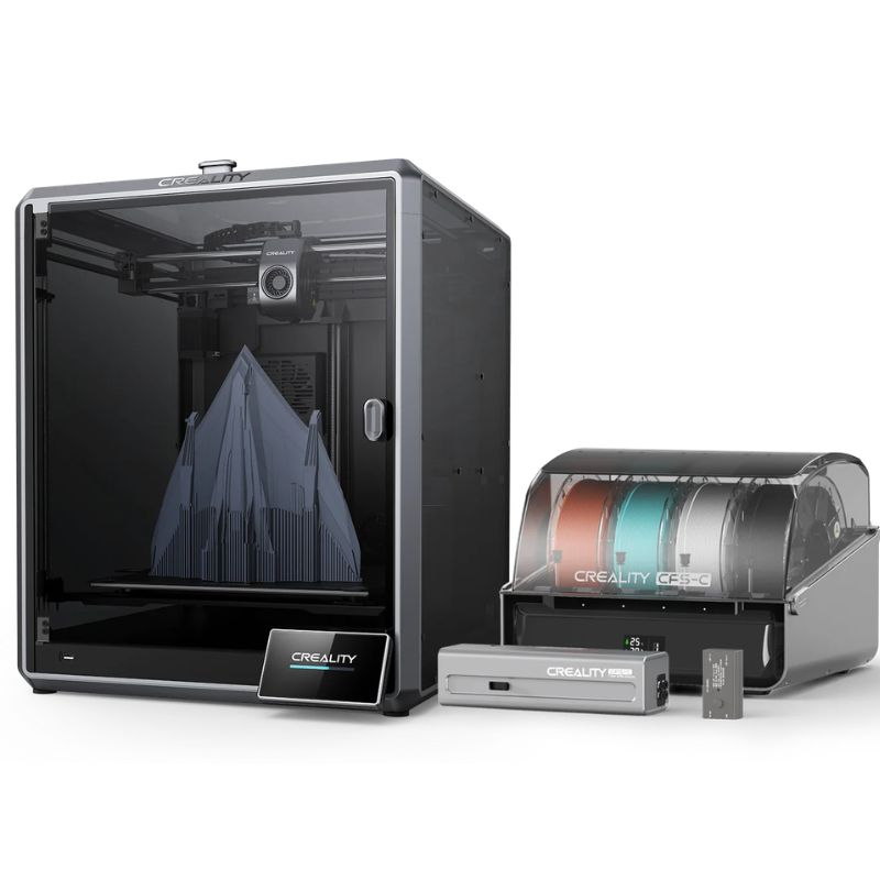 Der Creality K1 Max + CFS-C ist eine leistungsstarke Großformat-Multicolor-Lösung! Durch die Kombination eines geschlossenen Gehäuses, ultrahoher Geschwindigkeit und des CFS-C-Moduls für bis zu 4-Farben-Druck vereint er Produktivität, Kreativität und modernste Technologien. Außerdem integriert er KI mit intelligenter Kamera und LIDAR-Technologie für präzise und automatisierte Drucküberwachung.