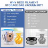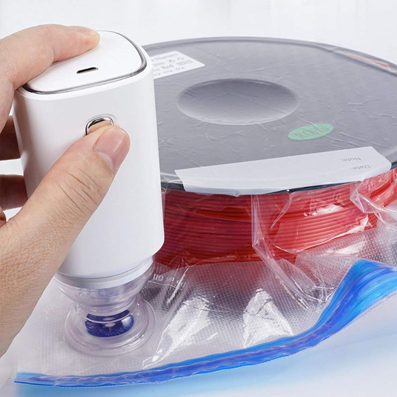 Diese elektrische Vakuumpumpe für 3D-Filament ist die ideale Lösung, um Ihre Spulen effektiv vor Feuchtigkeit zu schützen. Geliefert mit 5 Vakuum-Aufbewahrungsbeuteln, entfernt sie die Luft schnell dank ihrer starken Saugleistung.
