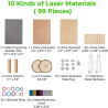 Mit diesem vollständigen Pack können Sie Ihre kreativen Projekte zum Leben erwecken: Innenraumdekoration, personalisierte Holzartikel, gravierte Visitenkarten, bunte Puzzles und vieles mehr. Jedes Material wird mit empfohlenen Gravureinstellungen geliefert, die Ihnen helfen, von Anfang an optimale Ergebnisse zu erzielen.