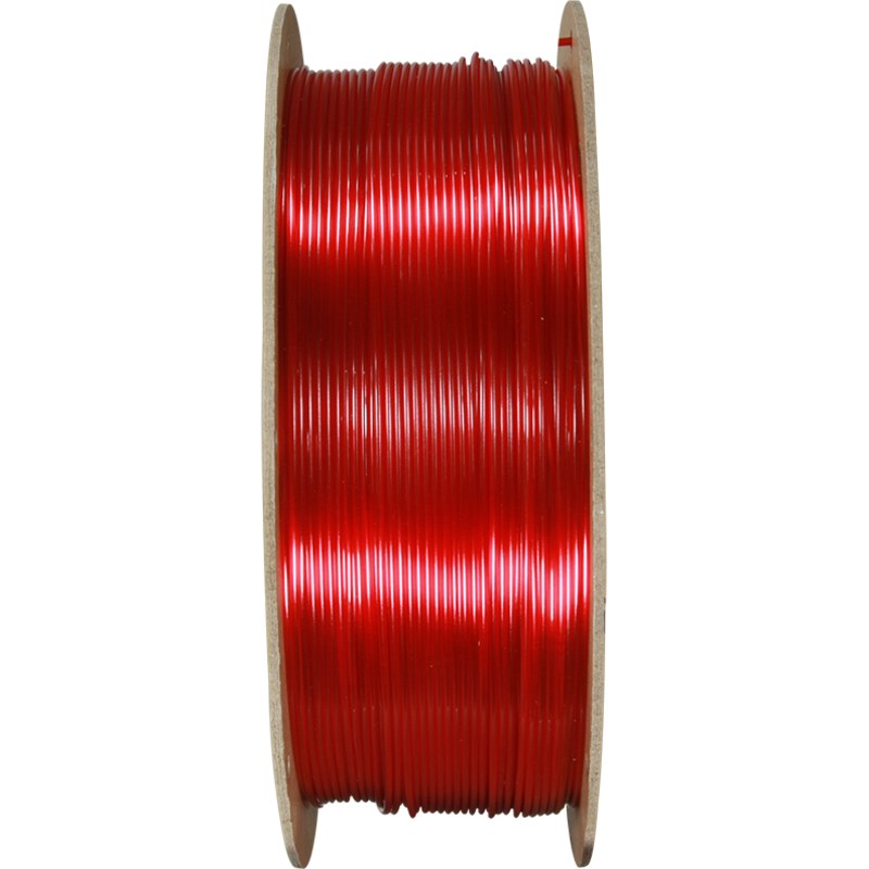 PolyLite PETG Durchsichtiges Rot von Polymaker ist ein 3D-Filament, das auf allen 3D-Druckern mit einer Heizplatte gedruckt werden kann, die Filament 1.75mm oder 2.85mm extrudieren.