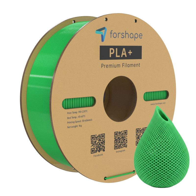 Mit dem Forshape PLA+ Rasen-Grün Filament können Sie eine sehr große Vielfalt an Teilen drucken. PLA ist das am häufigsten verwendete Material im 3D-Druck und bietet eine glänzende Oberfläche mit ansprechendem Aussehen.