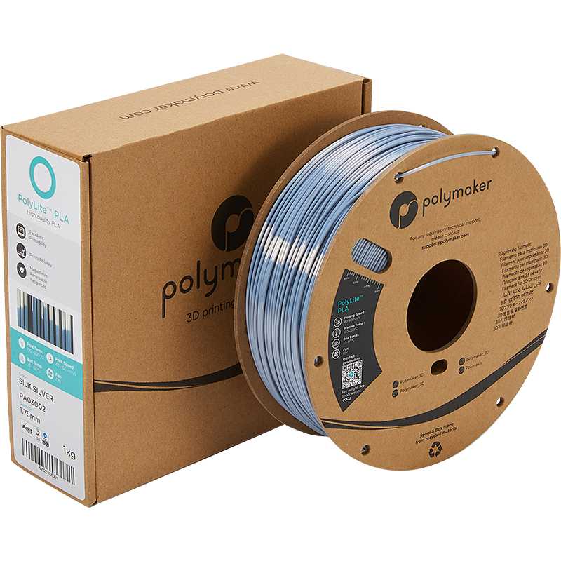 PolyLite Silk PLA Silber ist ein glänzendes PLA-Filament mit einem seidigen, satinierten Effekt. Durch sein besonderes Aussehen und die einfache Verarbeitung eignet es sich hervorragend für Figuren und dekorative Objekte.