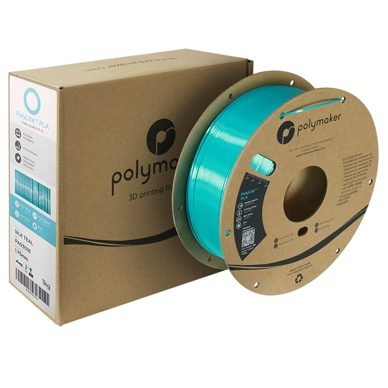 PolyLite Silk PLA Teal ist ein glänzendes PLA-Filament mit einem seidigen, satinierten Effekt. Durch sein besonderes Aussehen und die einfache Verarbeitung eignet es sich hervorragend für Figuren und dekorative Objekte.