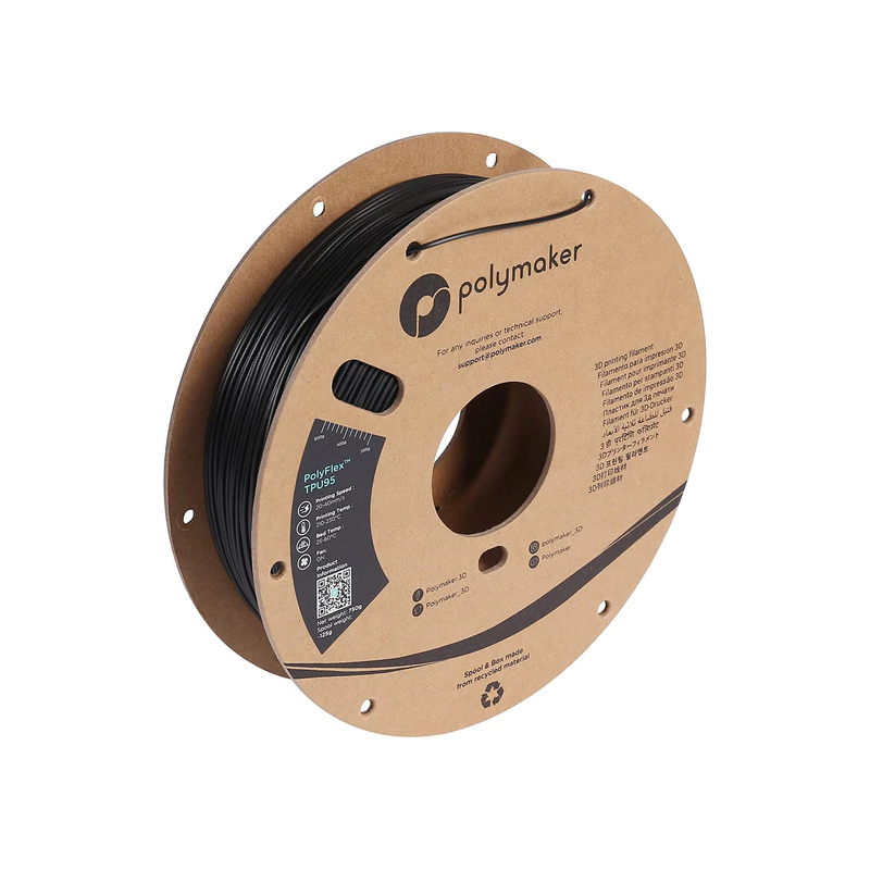 PolyFlex TPU90 Schwarz von Polymaker ist ein sehr flexibles, qualitativ hochwer tiges Material auf Addigy-Basis, das eine hohe Reißfestigkeit aufweist. PolyFlex TPU90 hat auch die Fähigkeit, UV-beständig zu sein.