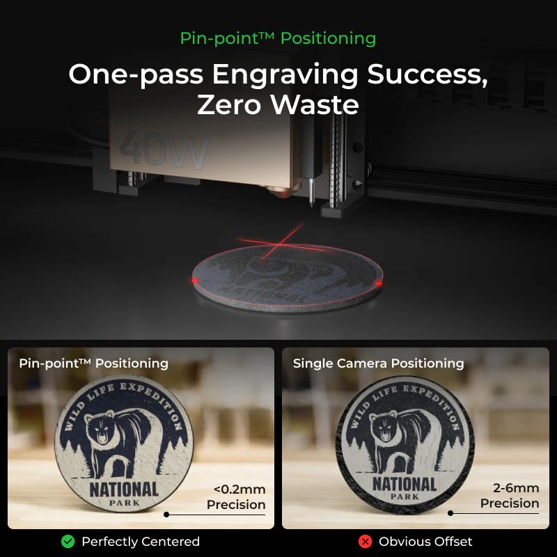 Der xTool S1 verwendet einen neuen Encoder kombiniert mit einem Algorithmus zur Erstellung eines vollständigen Szenenplans – so präzise wie ein Koordinatensystem. Die Position des Laserkopfs wird dabei in Echtzeit in der Software dargestellt und mit der realen Welt synchronisiert.