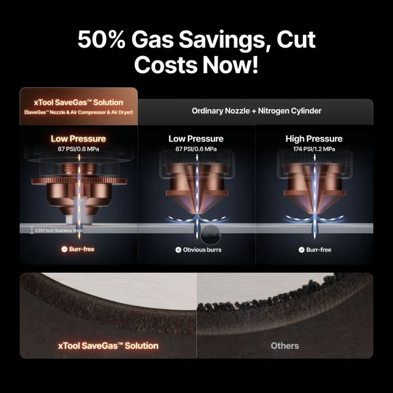 Kompatibel mit xTool MetalFab Laseranlagen und der xTool SaveGas™ Düse ist der xTool Air Dryer der ideale Partner für eine professionelle Metallproduktion mit Druckluft.